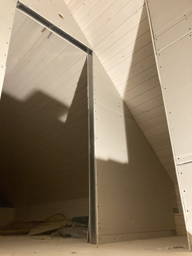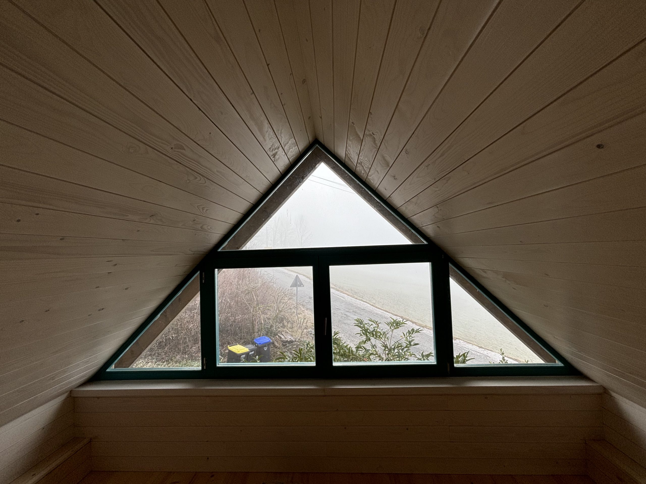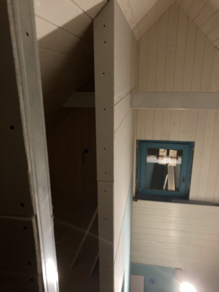 S skrbno izvedbo izolacijskega sloja smo poskrbeli za energetsko učinkovitost in prijetno bivalno klimo skozi vse leto. Leseni opaž dodaja prostoru toplino in naraven videz, knauf stene pa omogočajo ravne, čiste linije ter funkcionalno razporeditev prostora.