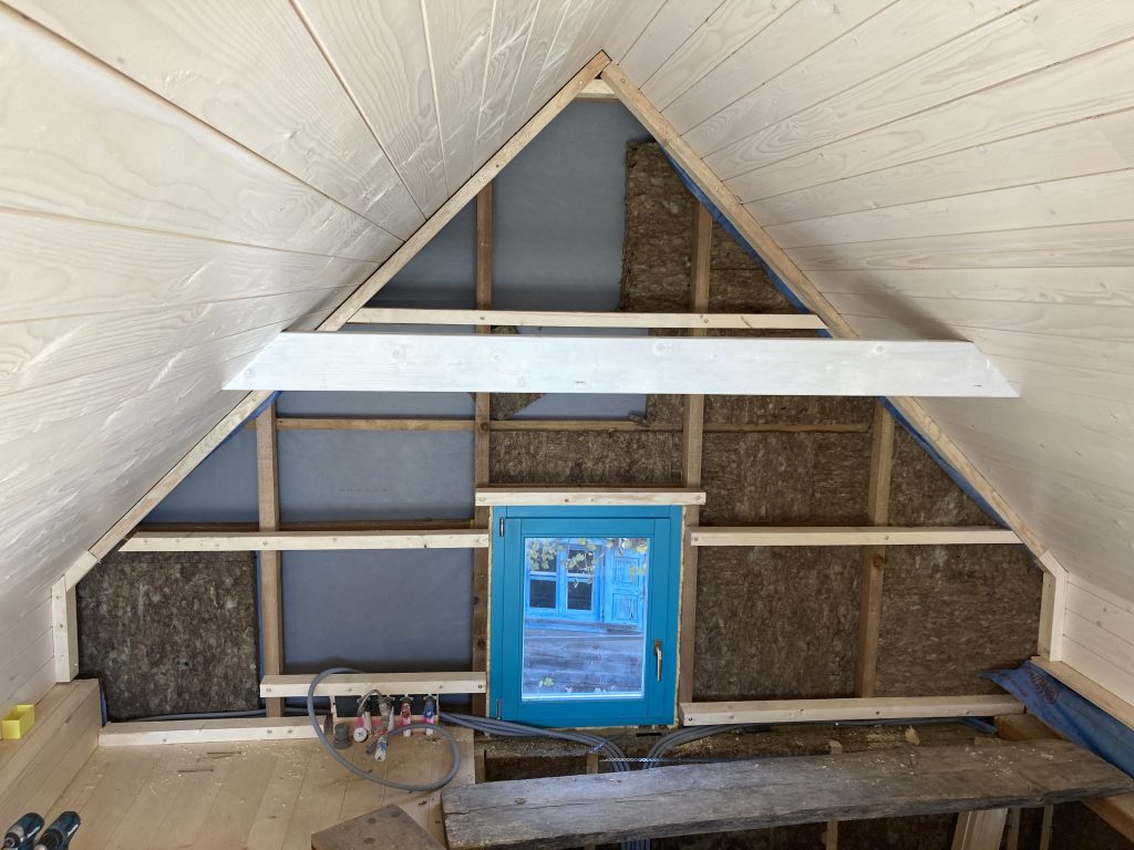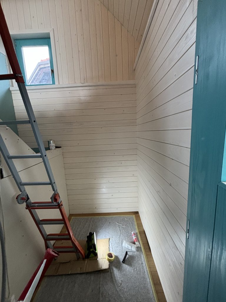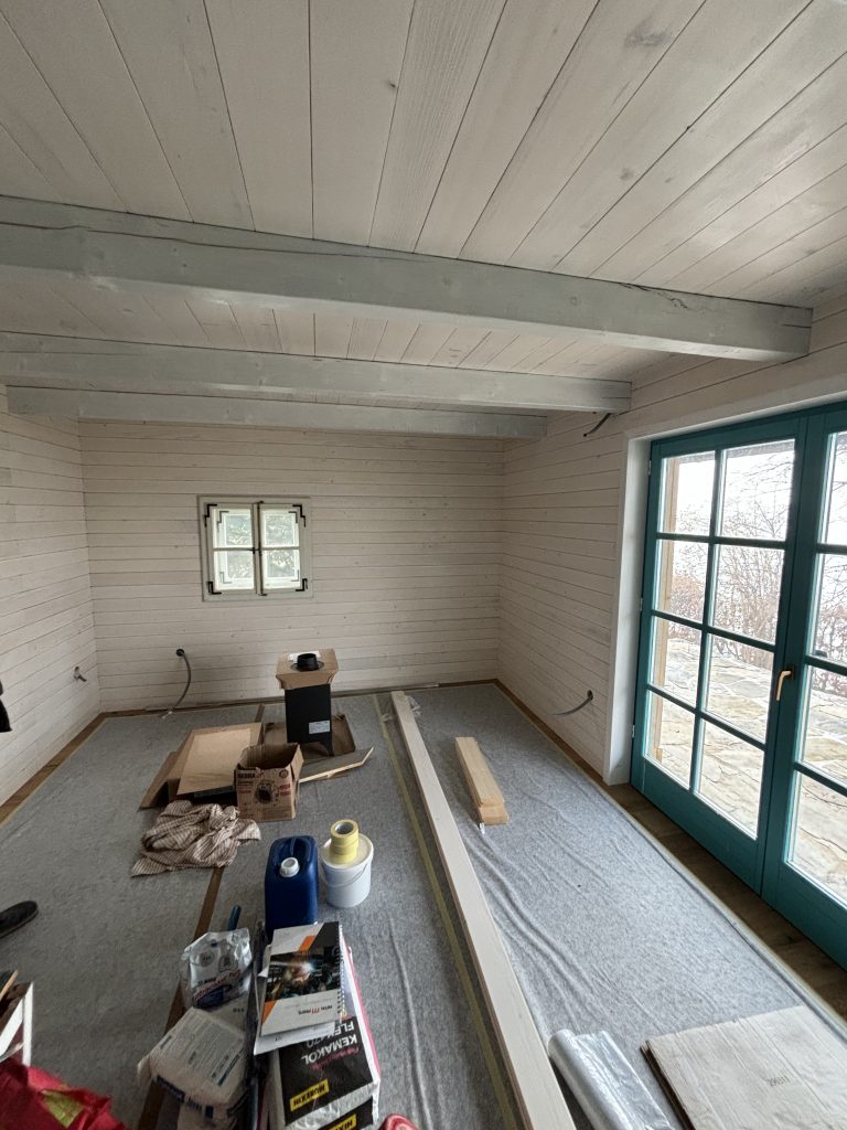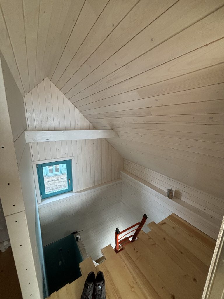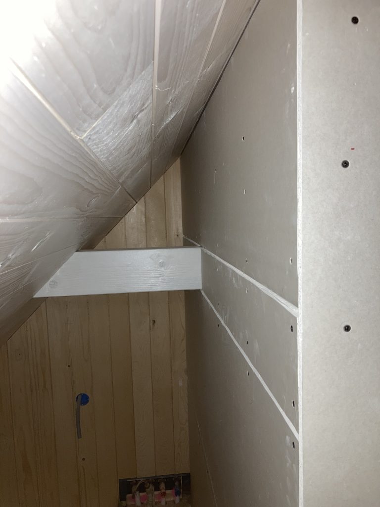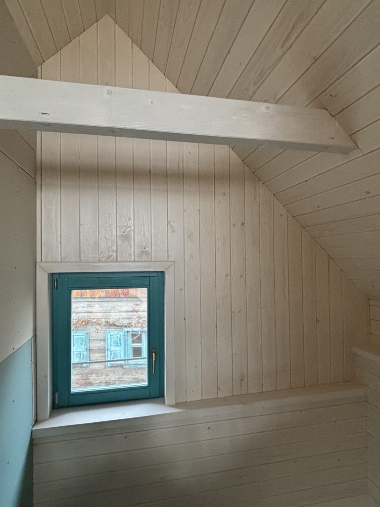 V počitniški hiši v Kamniku smo izvedli celovito obdelavo notranjih sten in stropov, vključno z izdelavo toplotno-izolacijskega sloja in estetsko končno obdelavo prostora.