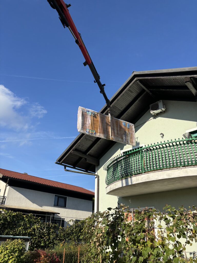 • velika dimenzija mize – 300 × 120 cm, zaradi katere je bila miza dostavljena z avtodvigalom skozi balkon v nadstropju