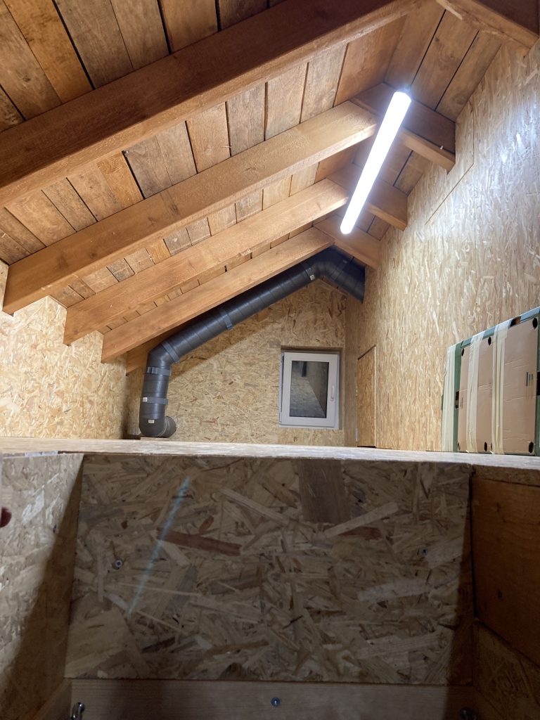 Posebno pozornost smo namenili tudi tehničnim zahtevam – v celoti smo izdelali namenski prostor za prezračevalni sistem. Ta del je popolnoma izoliran in pripravljen za vgradnjo sodobnega prezračevalnega sistema z rekuperacijo toplote.