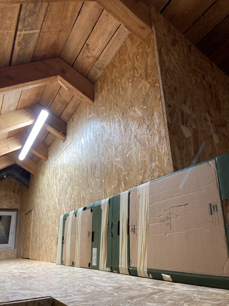 Na objektu smo izvedli celovito oblogo podstrešnega prostora z OSB ploščami. Obložili smo tla in stene kar prostoru daje urejen in čist videz ter hkrati omogoča dodatno zaščito konstrukcije.